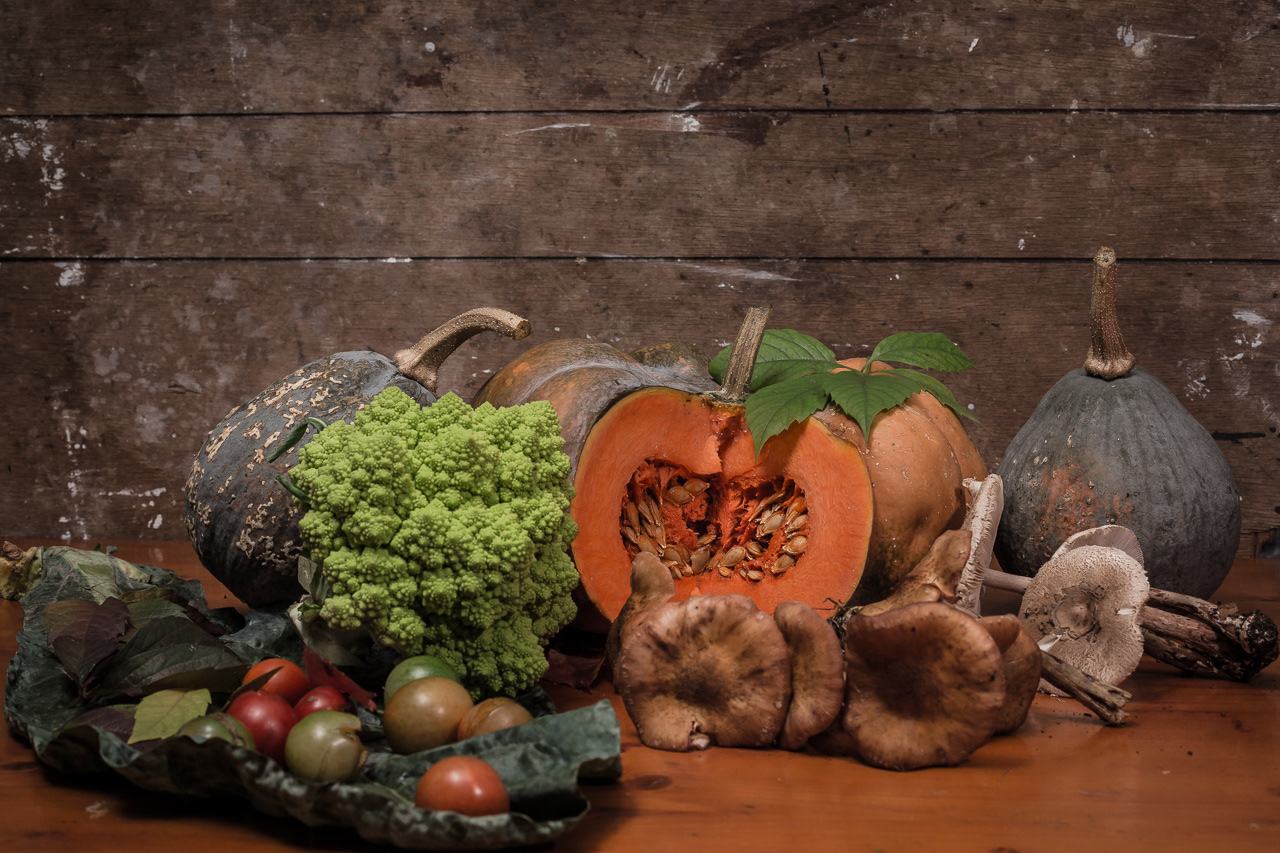 Tra cose dell'orto e del bosco davanti all'obiettivo della macchina fotografica è uscito questo. La terra dà frutti straordinari senza bisogno di tagliare la gola a nessuno.